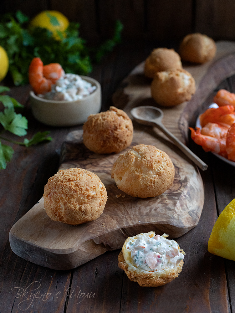 Да се върна на профитеролите. Това е класическо парено тесто, върху което се поставя кръгче пармезанов кракелин. Ще напиша рецептата съвсем дословно и ще прикача линк към други мои профитероли с кракелин. Така ще избегна повторни обяснения, а и ще може да видите в няколко снимки какво е кракелин и как се прави.