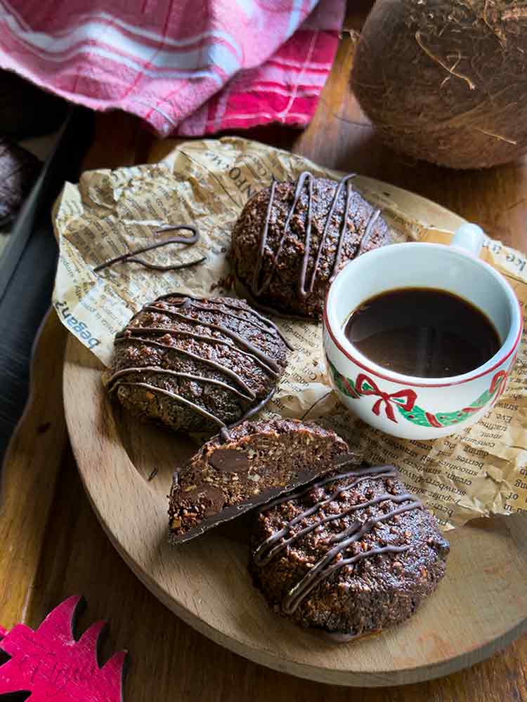 За спазващи коледния пост и за тези, които обичат кокос и шоколад! Светкавични сладки без брашно, масло и яйца. Приготвят се за минута. Просто трябва да сложите в купа заедно всички съставки и да ги разбъркате.